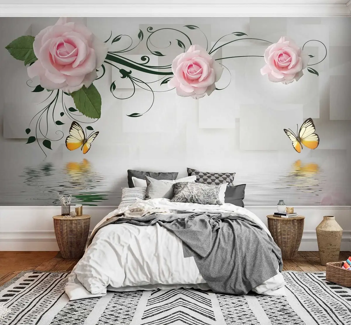 Sie können die Tapete sehr vorsichtig mit einem leicht feuchten Schwamm reinigen. Wir raten jedoch davon ab, die Tapete zu schrubben oder Reinigungsmittel zu verwenden, da dies die Oberfläche und die Farben der Tapete beschädigen kann.