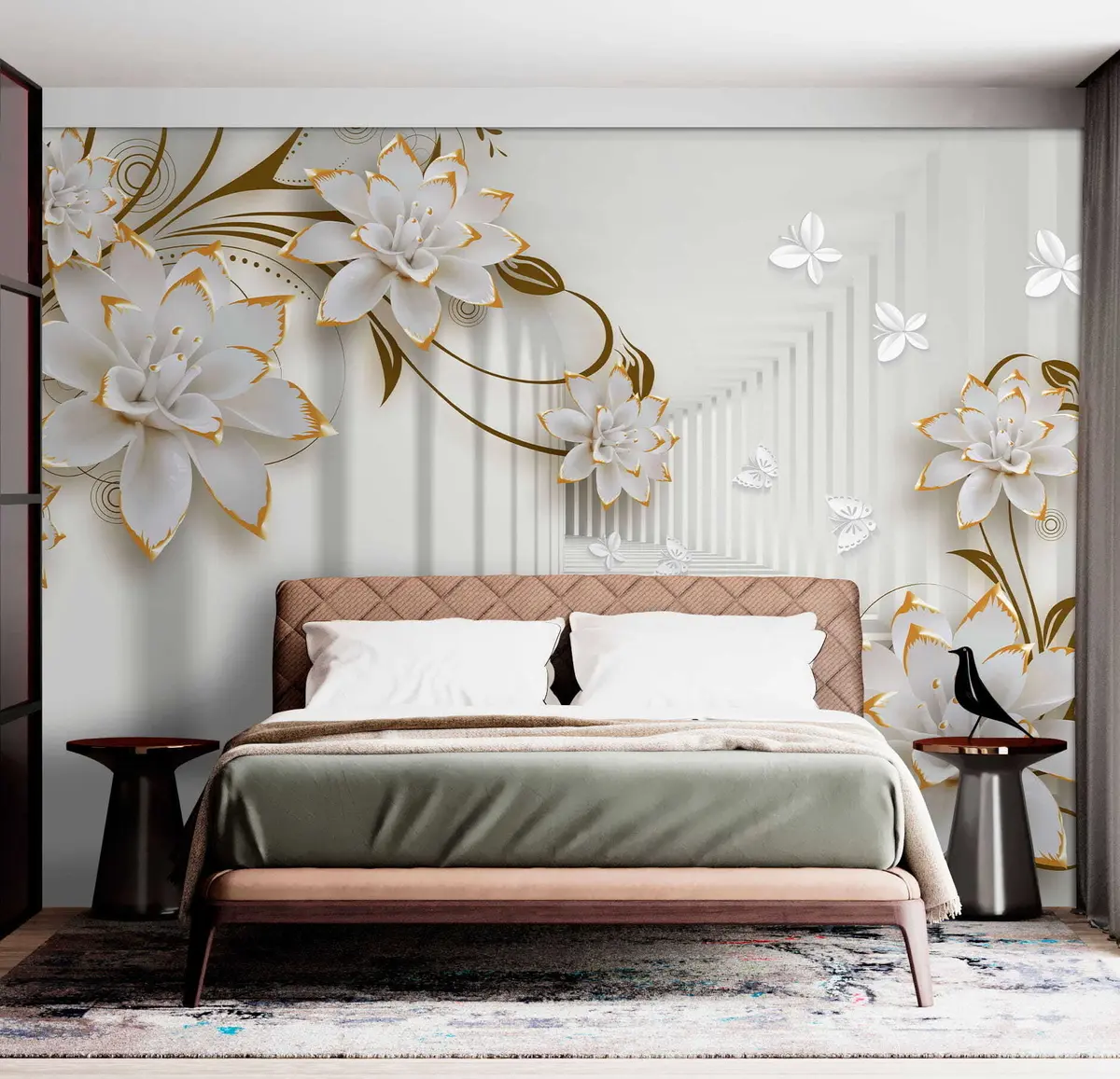 Fototapeten Blumen und Schmetterlinge in einem Lichttunnel N° u47046