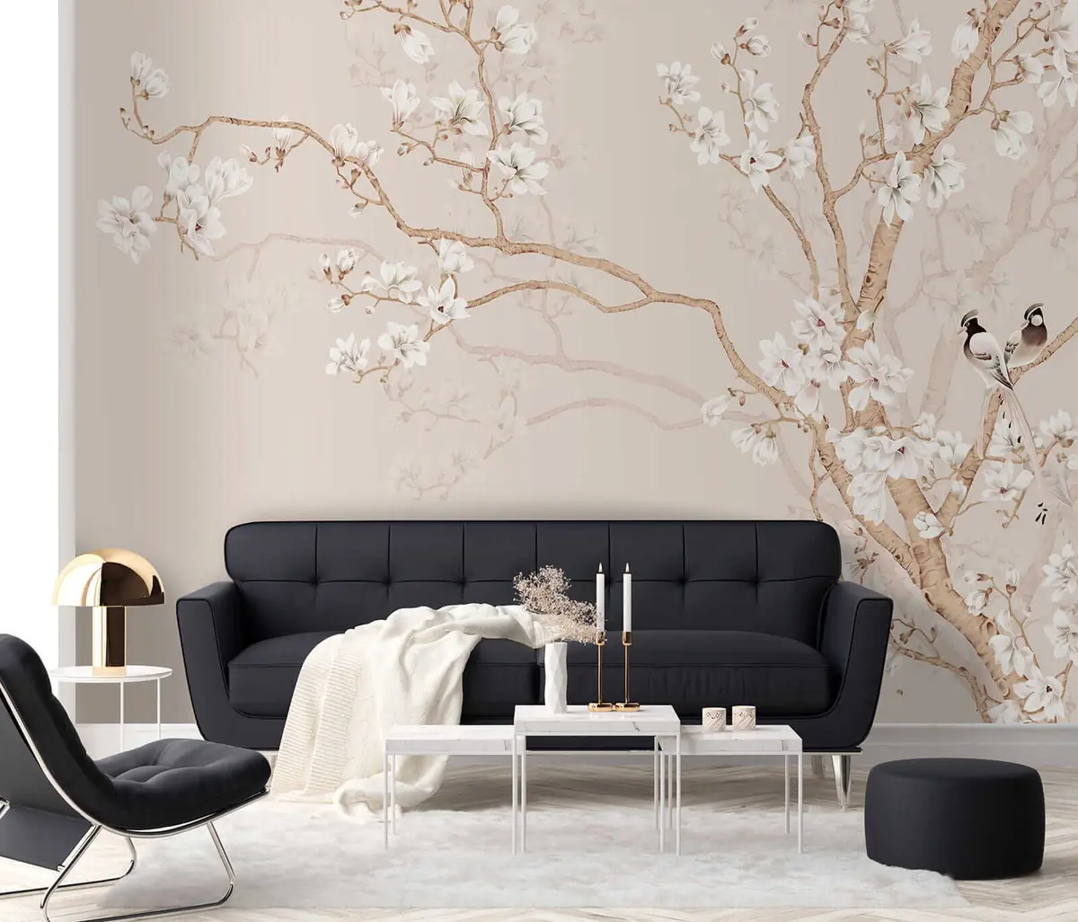 Fototapeten Blühender Baum und Vögel N° u25842