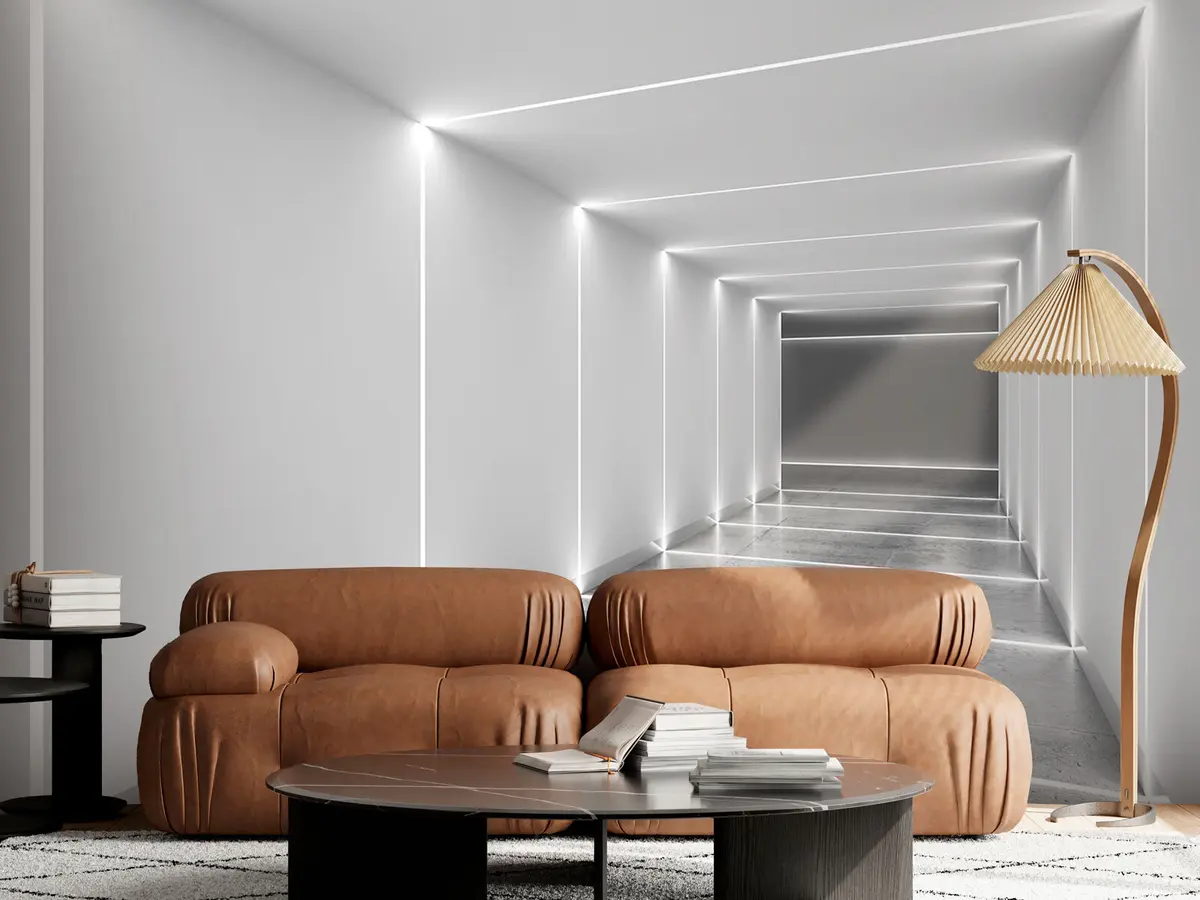 Fototapeten Weißer Tunnel mit poliertem Betonboden N° u95075