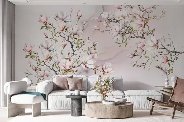 Fototapete Blühende Magnolienbäume auf einem Marmorhintergrund u96114