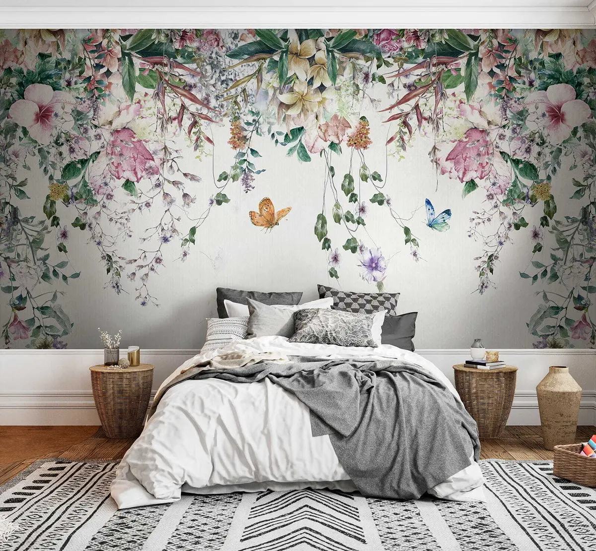 Sie können die Tapete sehr vorsichtig mit einem leicht feuchten Schwamm reinigen. Wir raten jedoch davon ab, die Tapete zu schrubben oder Reinigungsmittel zu verwenden, da dies die Oberfläche und die Farben der Tapete beschädigen kann.