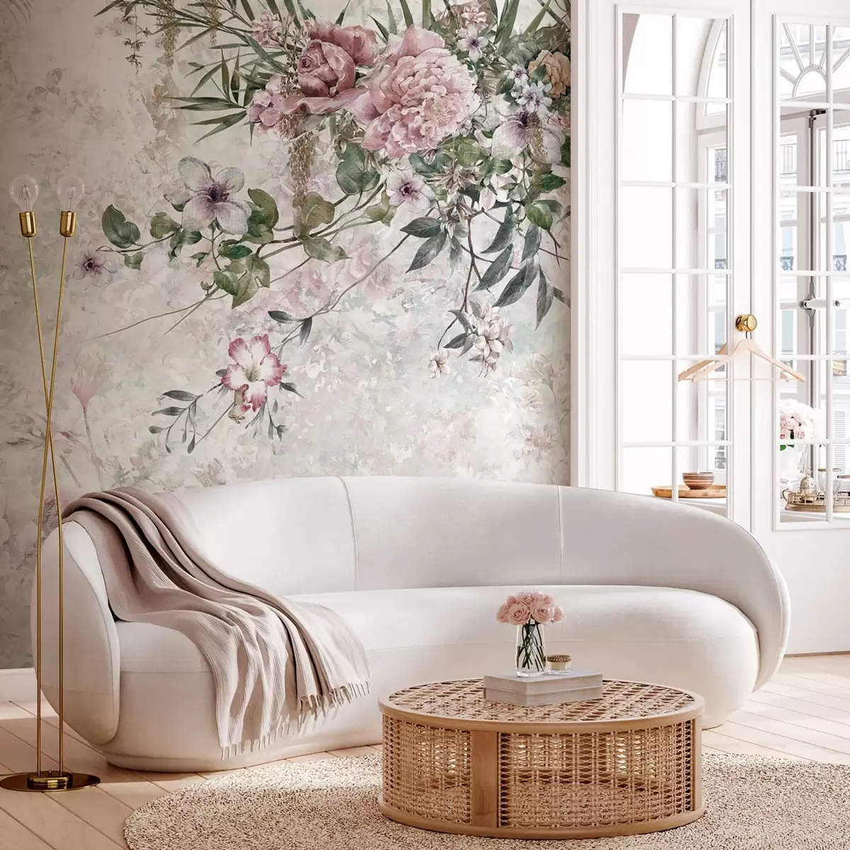 Fototapeten Vintage-Blumen an der Marmorwand N° u97046