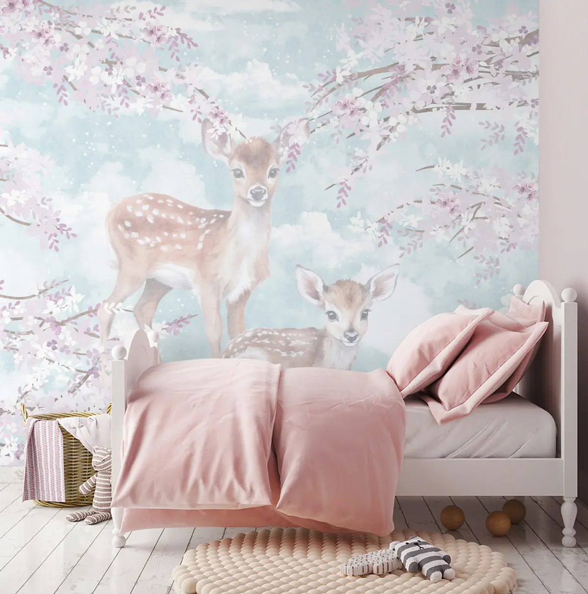 Fototapeten Kitze zwischen blühenden Bäumen N° u97464