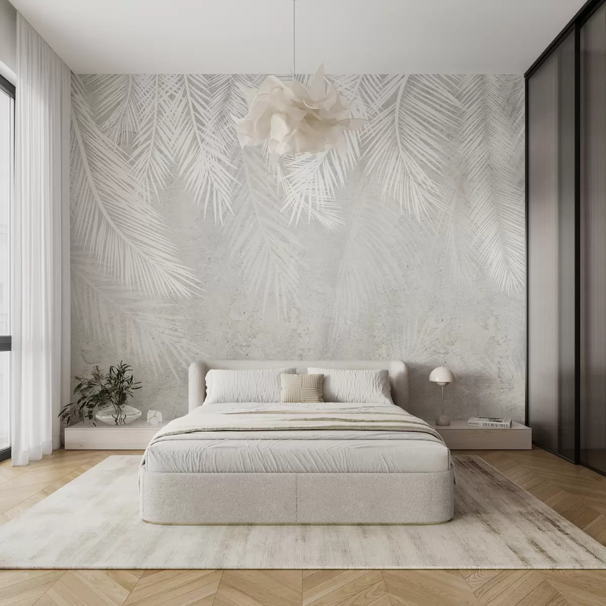 Fototapeten Weiße zerbrechliche Palmenblätter mit Grunge-Textur N° u94286