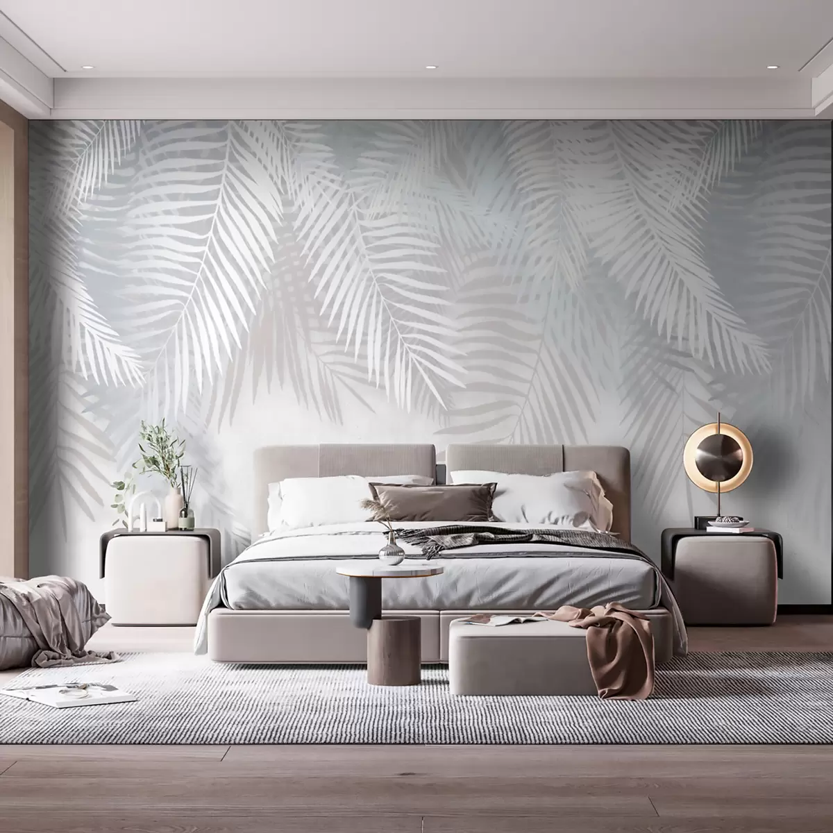Fototapeten Weiße Palmenblätter auf Grunge-Textur N° u94457