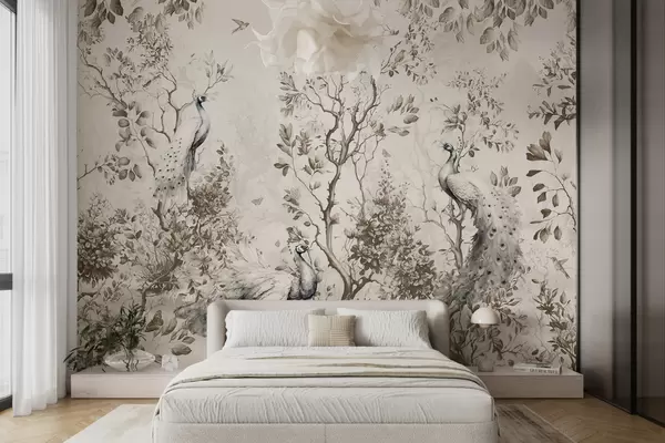 Fototapeten Ein Garten mit zarten Vögeln, Pfauen N° u94850