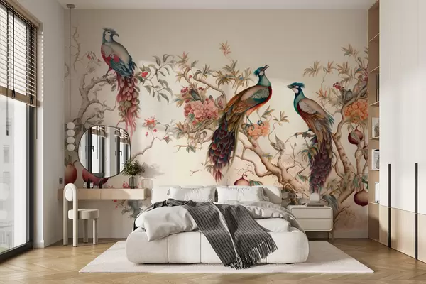 Fototapeten Vögel auf den Zweigen eines Granatapfels N° u95667