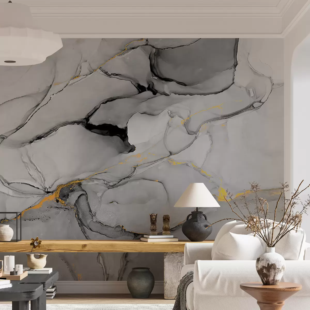 Sie können die Tapete sehr vorsichtig mit einem leicht feuchten Schwamm reinigen. Wir raten jedoch davon ab, die Tapete zu schrubben oder Reinigungsmittel zu verwenden, da dies die Oberfläche und die Farben der Tapete beschädigen kann.