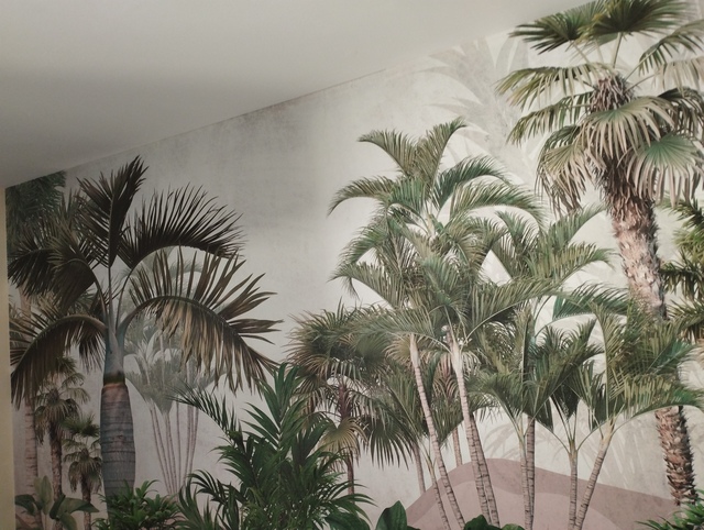 Sie können die Tapete sehr vorsichtig mit einem leicht feuchten Schwamm reinigen. Wir raten jedoch davon ab, die Tapete zu schrubben oder Reinigungsmittel zu verwenden, da dies die Oberfläche und die Farben der Tapete beschädigen kann.