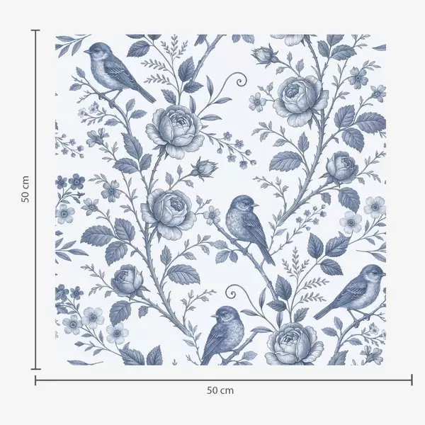 Tapete Blaue Toile-Vögel und Rosen auf weißem Hintergrund Nr. a00873
