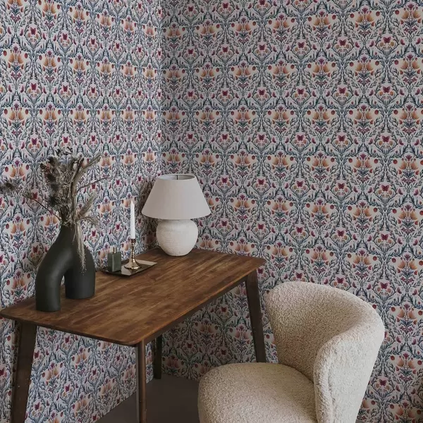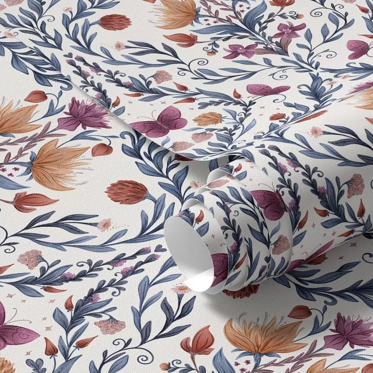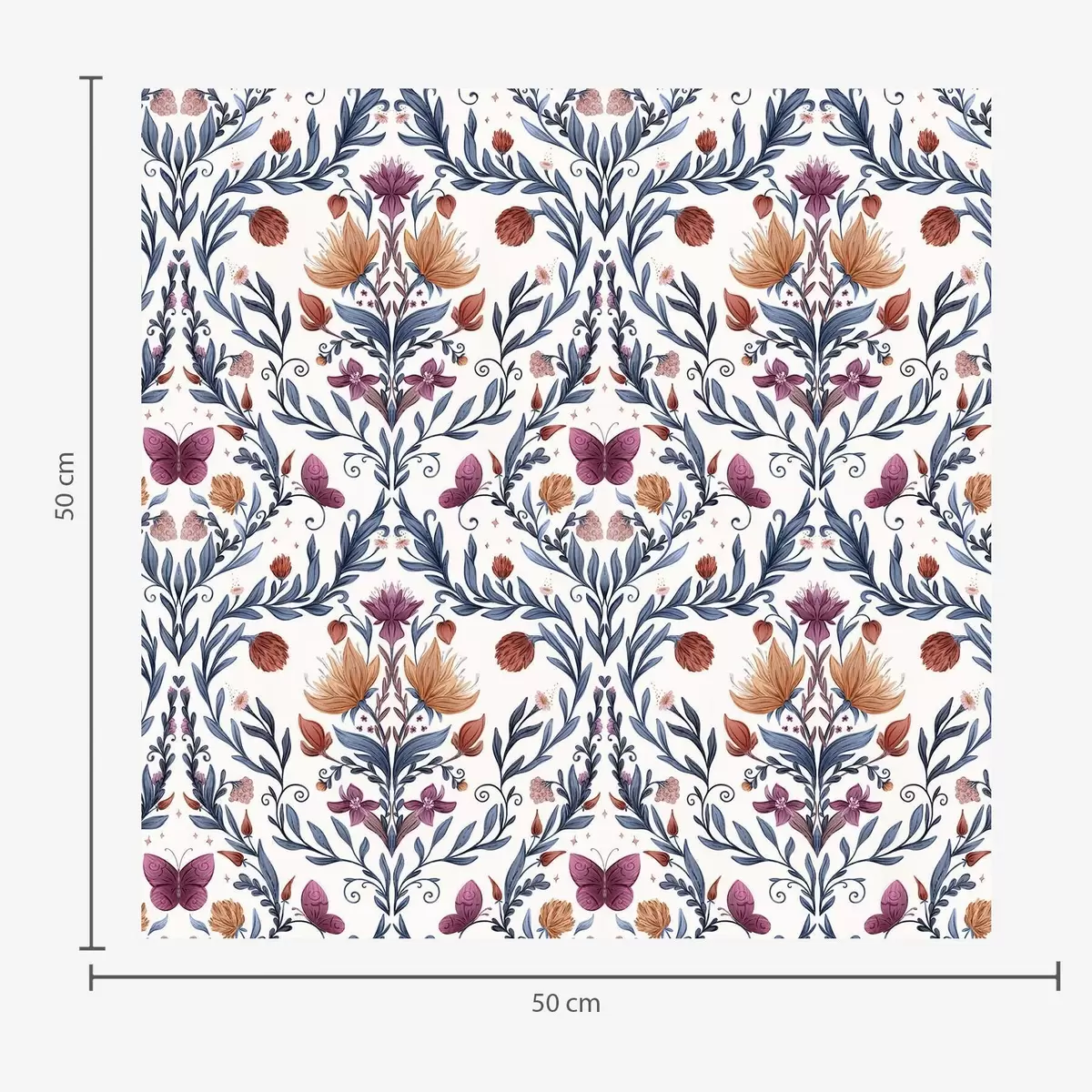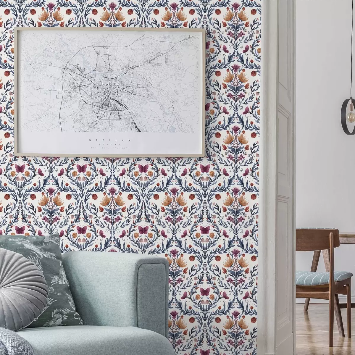 Tapete Blumendamast mit Schmetterlingen auf warmem Creme Nr. a00926v2