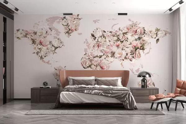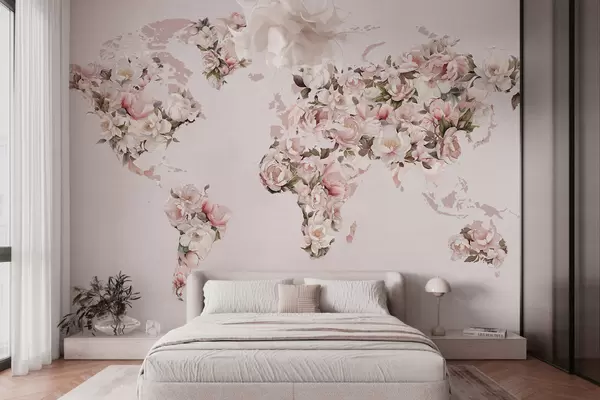 Fototapeten Eine rosa Weltkarte aus großen weißen und rosa Pfingstrosen N° c00005