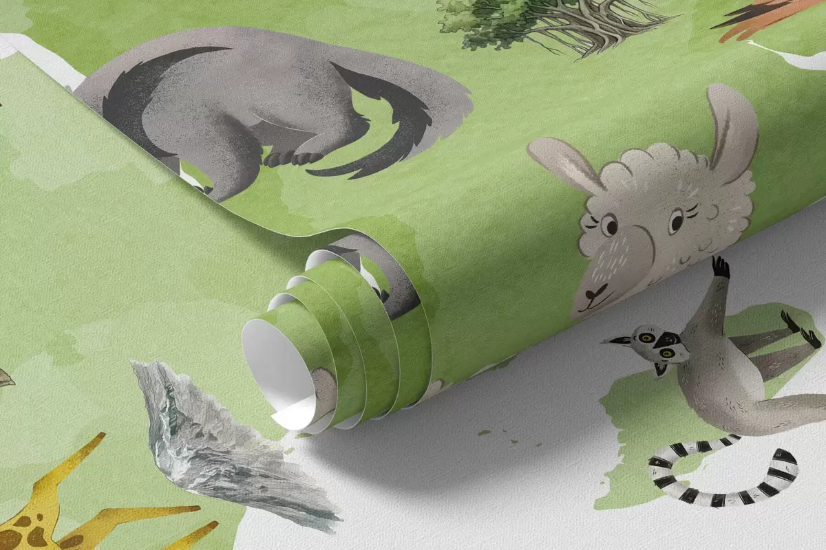 Fototapeten Eine Karte im Aquarellstil, die Tiere, Pflanzen und Architektur zeigt. Beschriftungen auf Ukrainisch N° c00009ukv2