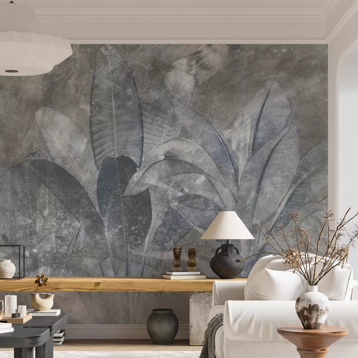 Fototapeten Bananenblätter auf einem steinernen Hintergrund N° u73884v3