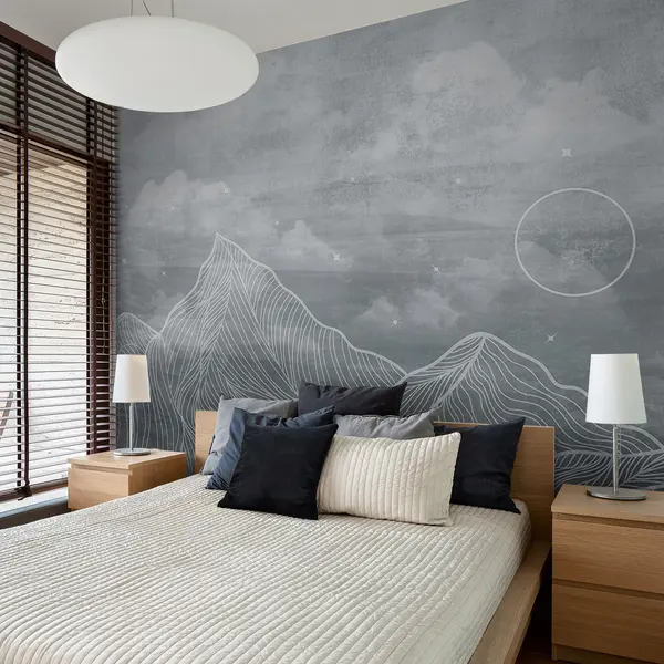 Fototapeten Grunge Textur mit Wolken und Bergen, graue Farbe, Natur Thema Kunst N° u98838v1