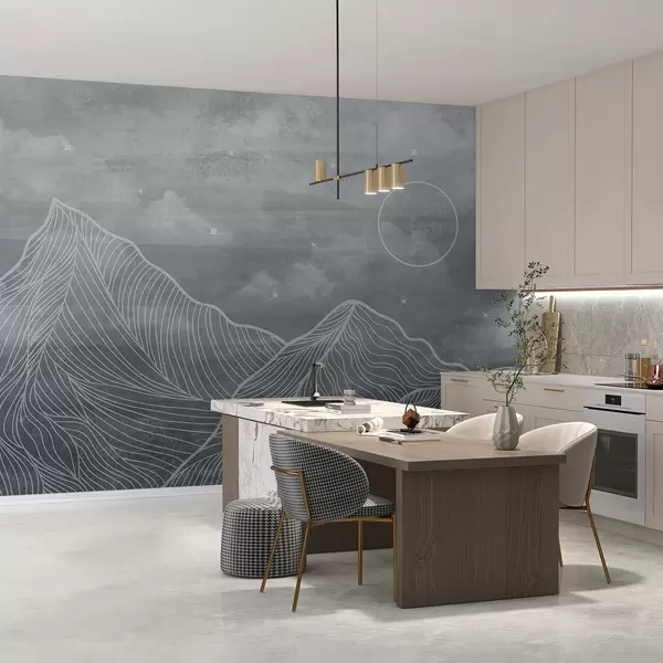 Fototapete Grunge Textur mit Wolken und Bergen, graue Farbe, Natur Thema Kunst u98838v1