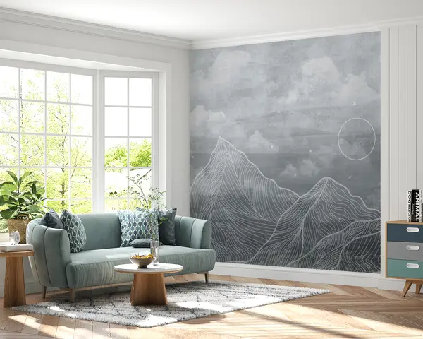 Fototapeten Grunge Textur mit Wolken und Bergen, graue Farbe, Natur Thema Kunst N° u98838v1