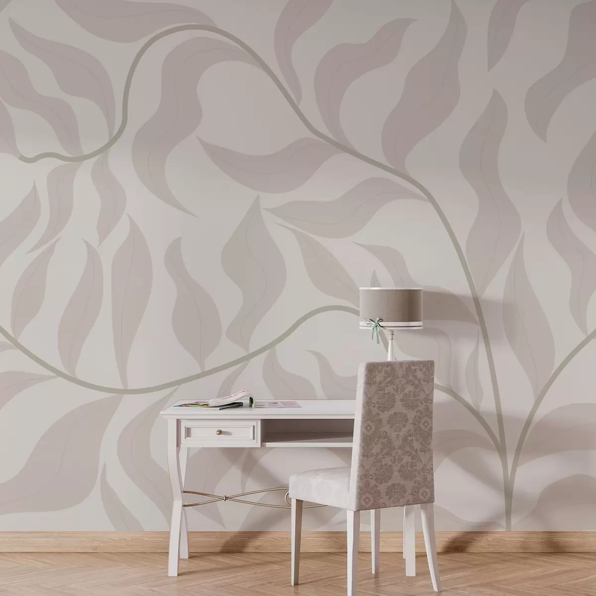 Fototapeten Elegante Blätter sanft verschlungen auf Creme N° w00629v3