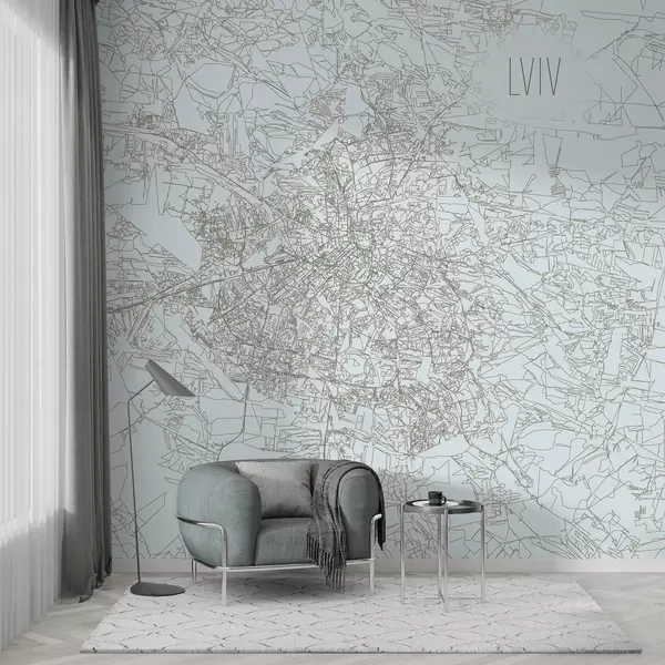 Fototapeten Vergrößertes Kartenporträt-Wandbild der Stadt Lviv auf hellblauem Hintergrund N° w01023