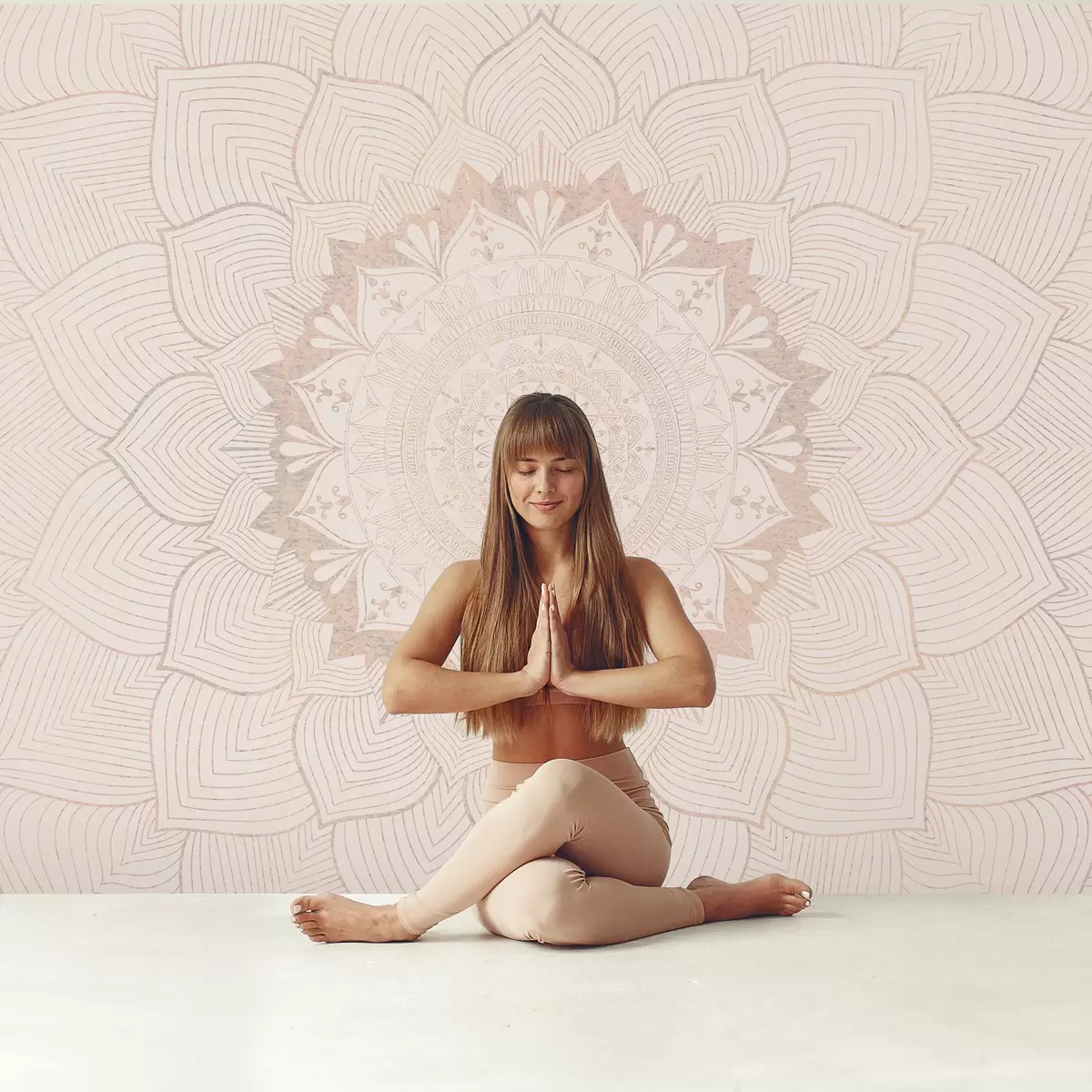 Fototapete Rundes Mandala, Tapete für den Yogaraum oder zur Harmonisierung des persönlichen Raums. Wandmandala in warmen Pastellfarben auf einem strukturierten unregelmäßigen Hintergrund w01088