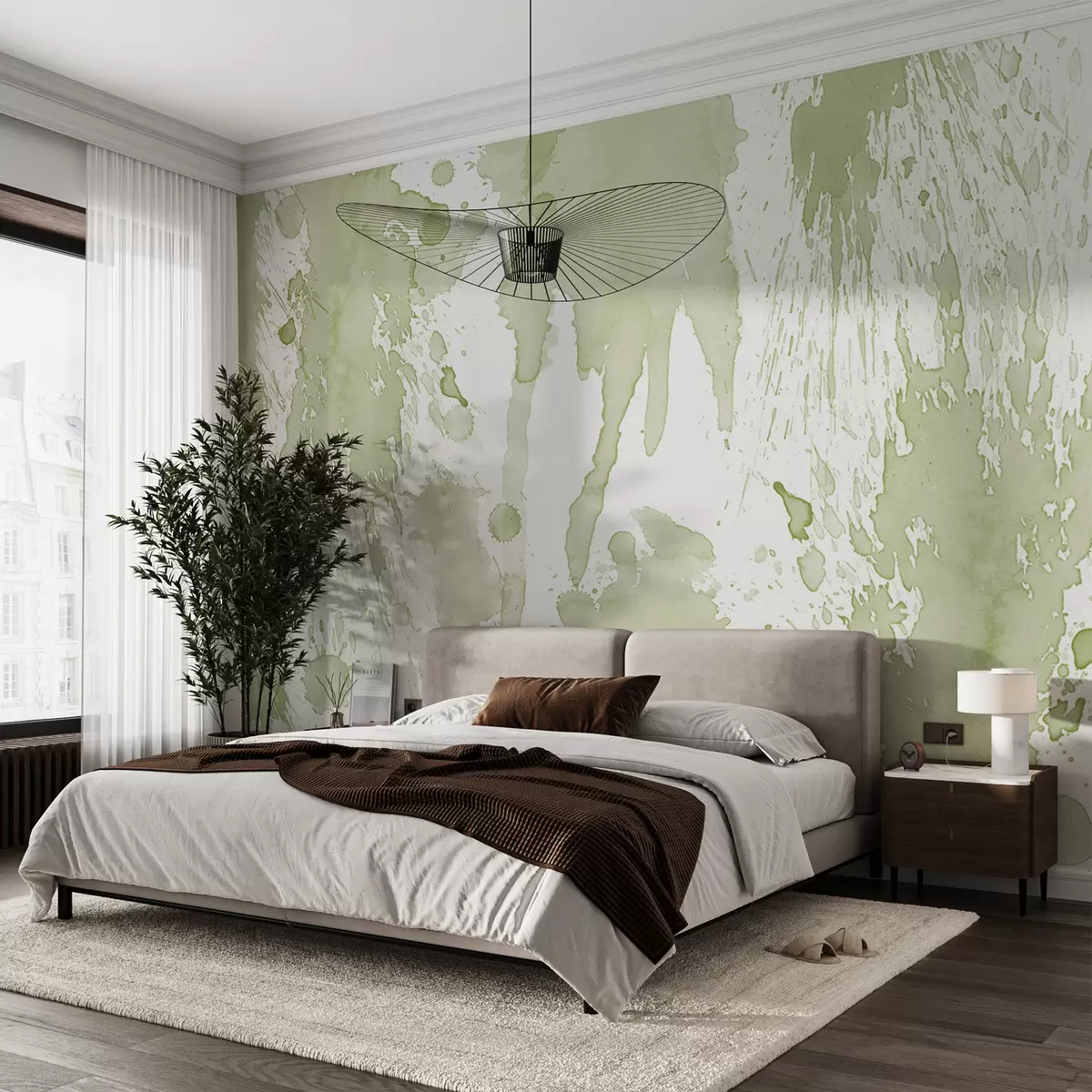 Sie können die Tapete sehr vorsichtig mit einem leicht feuchten Schwamm reinigen. Wir raten jedoch davon ab, die Tapete zu schrubben oder Reinigungsmittel zu verwenden, da dies die Oberfläche und die Farben der Tapete beschädigen kann.