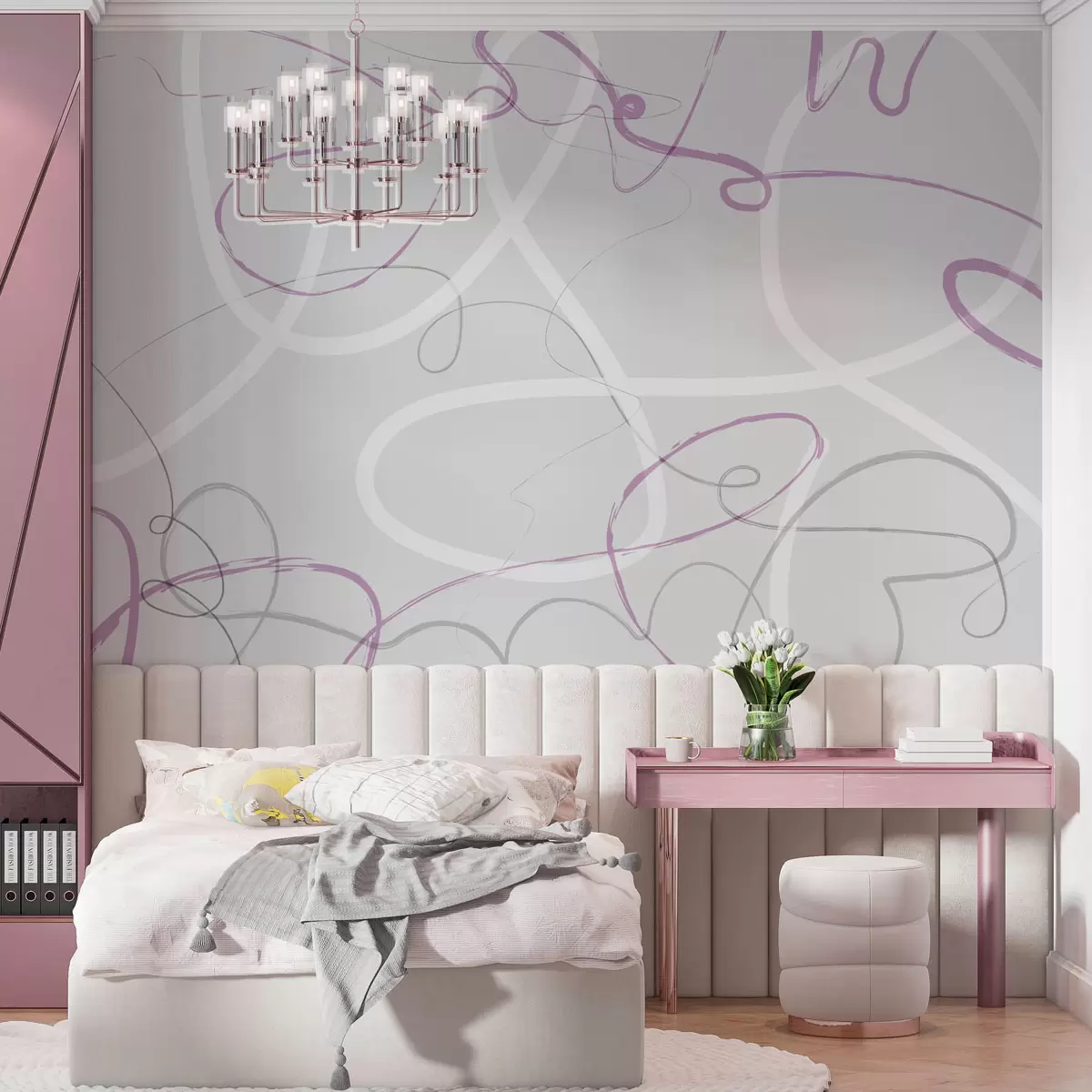 Fototapete Abstrakte violette Linien auf grauem Hintergrund w01455v2