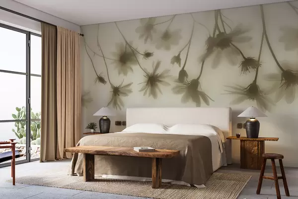 Fototapeten Zarte Blüten im Nebel hängen von oben in Pastellfarben N° w01469v1
