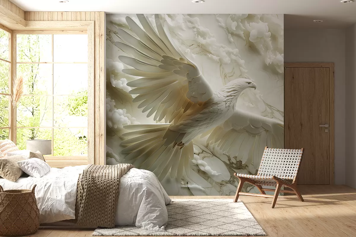 Fototapeten 3D weißer Adler auf einem Hintergrund aus Wolken und Marmor N° w01477