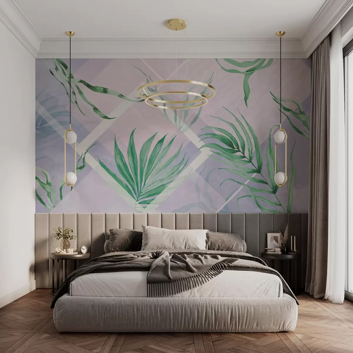 Fototapeten Üppiges Grün vor sanftem Pastellhintergrund N° w01625