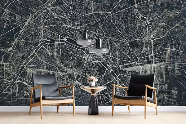 Fototapeten Pariser Stadtplan, Strichzeichnung, Architektur, Frankreich, dunkle Farben N° w01697v1