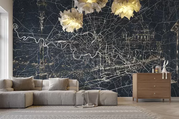 Fototapeten Rom Stadtplan, Strichzeichnung, Architektur, Italien, dunkle Farben N° w01698v1