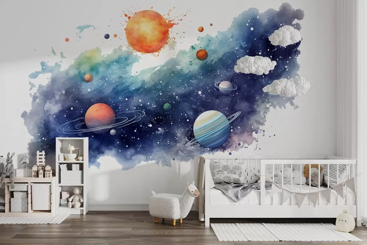 Fototapeten Aquarell Raum, Planeten, Sonne, Sterne N° w01803