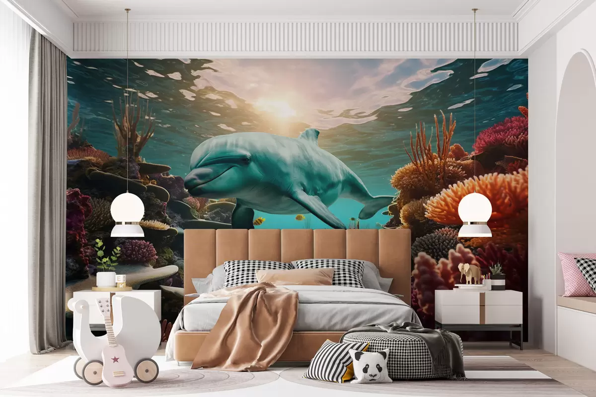 Fototapeten Großer Delfin in der Unterwasserwelt in Korallenriffen N° w01873