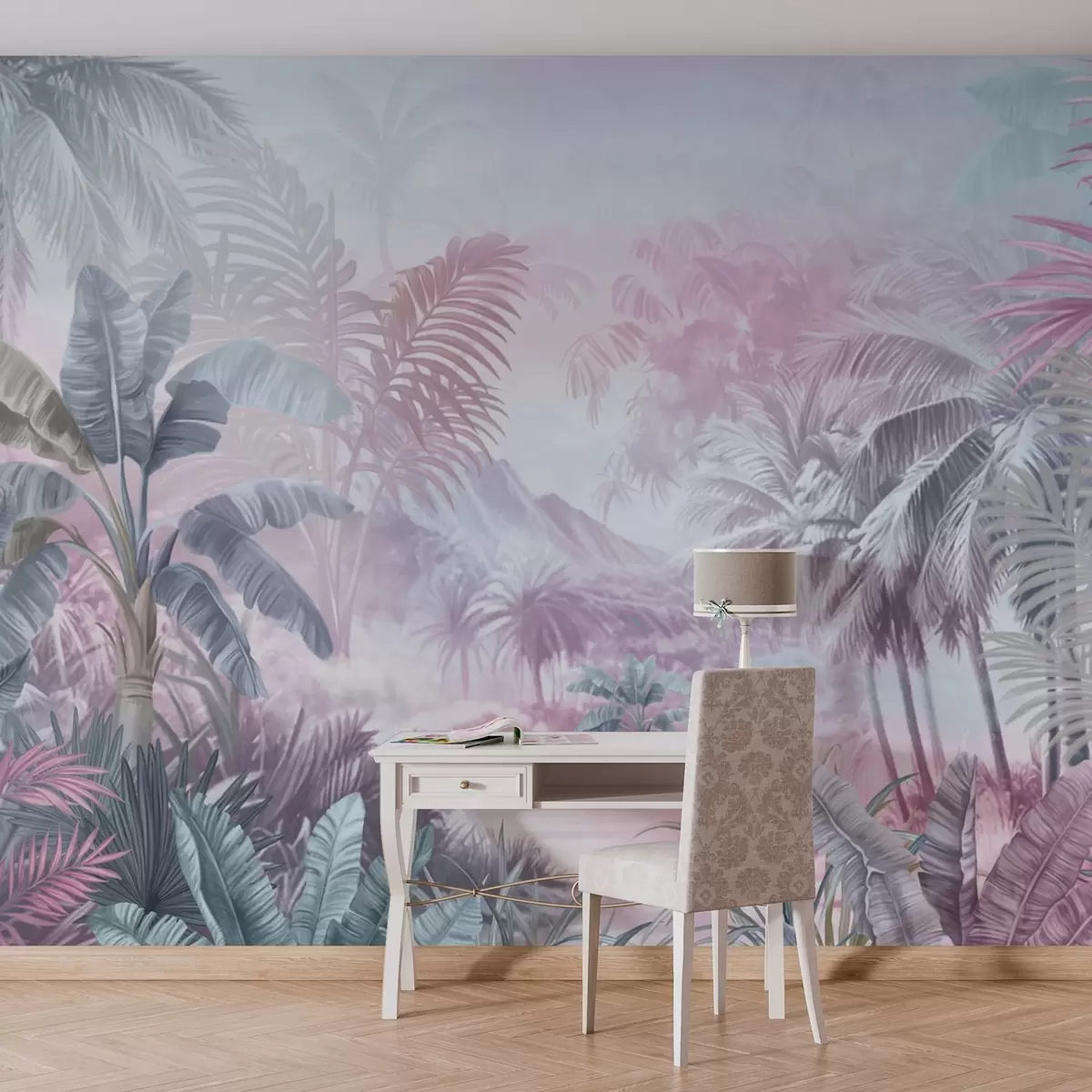 Fototapeten Regenwald in sanften Blau- und Rosatönen N° w01931v2