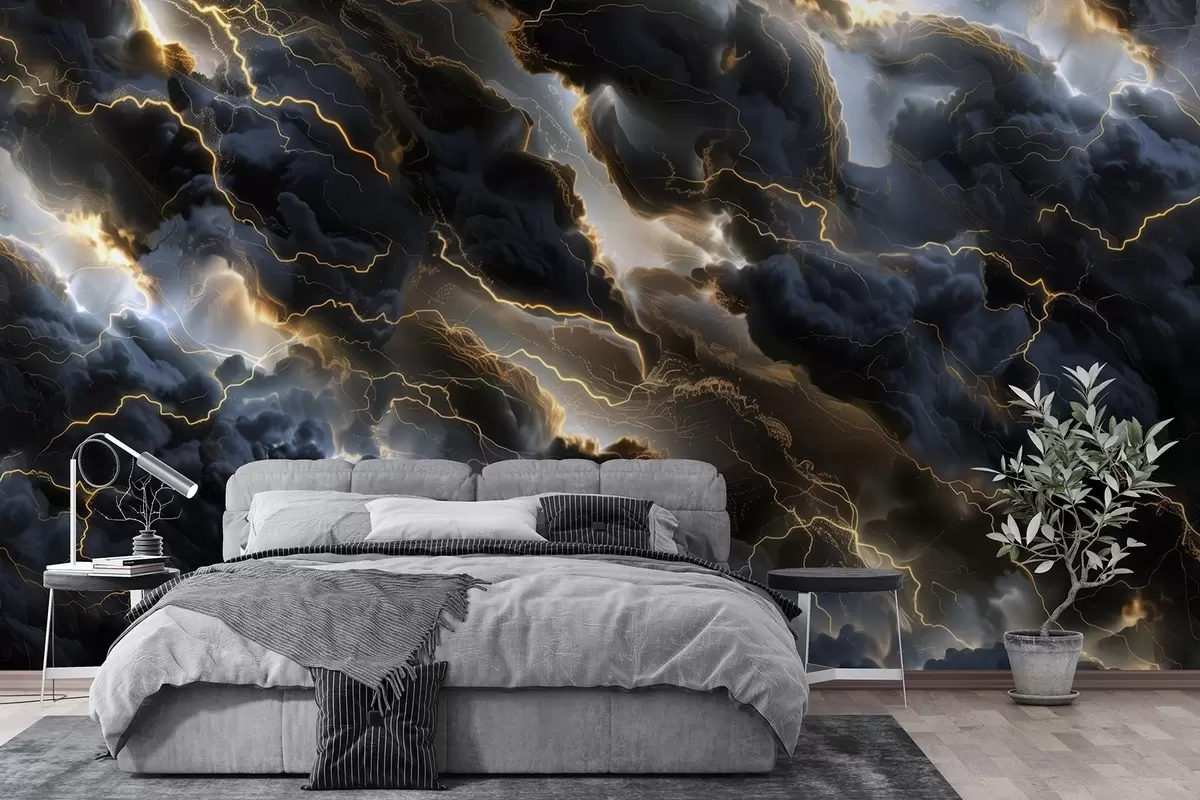 Fototapeten Schwarze Wolken mit Blitzen, die wie Marmor aussehen N° w01936