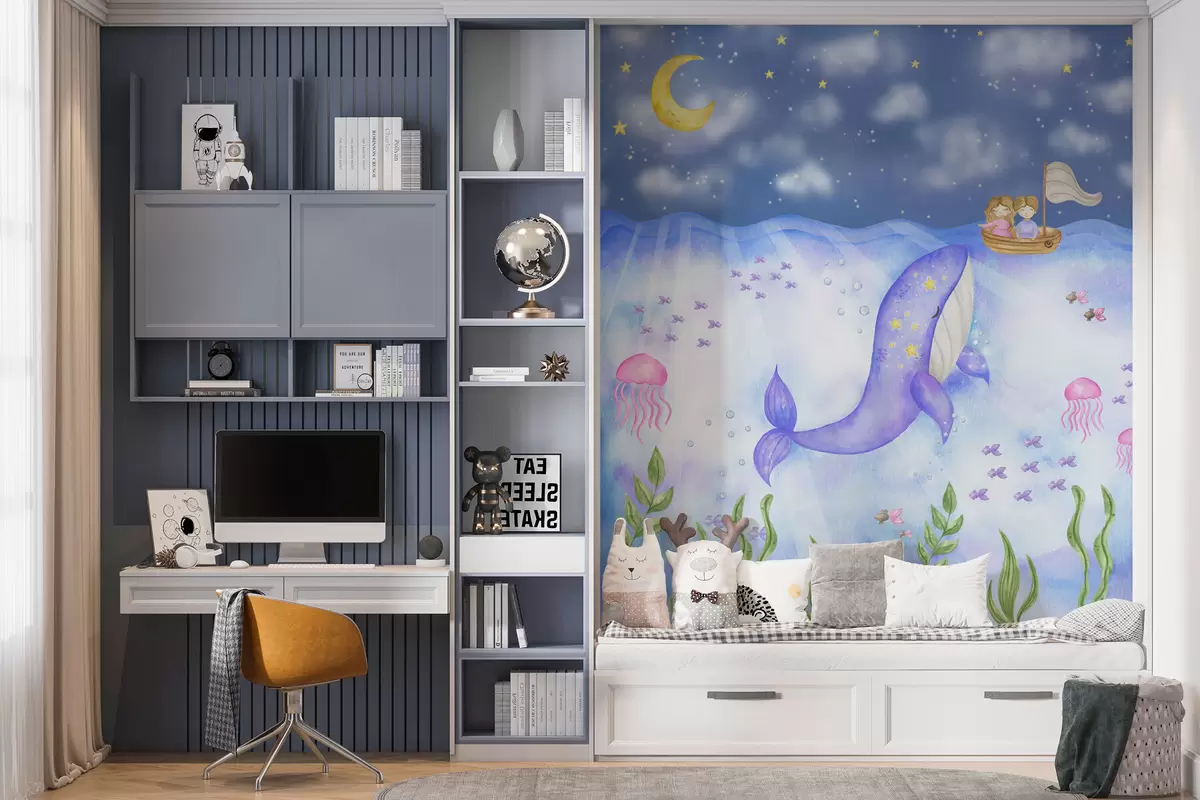 Fototapeten Wal schwimmt unter einem sternenklaren Nachthimmel N° w01965