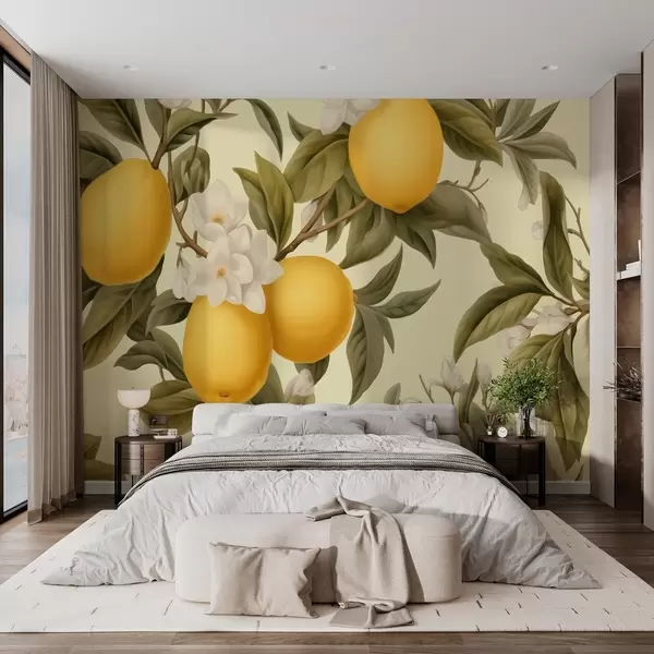 Fototapeten Saftige Zitronen mit weißen Blüten an den Zweigen N° w01977