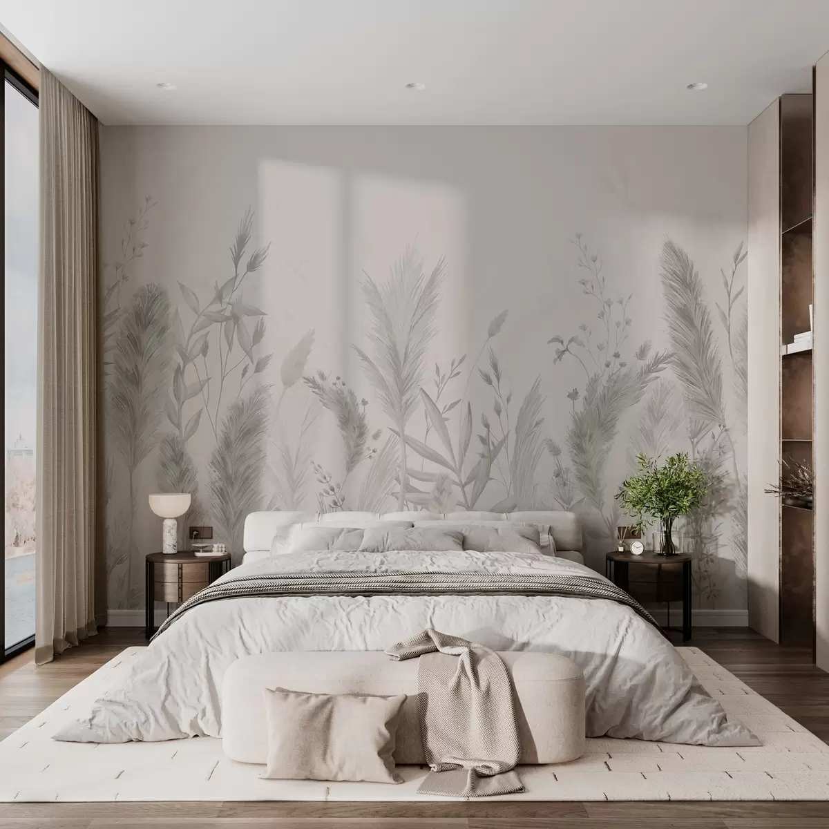 Fototapeten Hohe Feldgräser und Blumen in neutralen Farben N° w02004