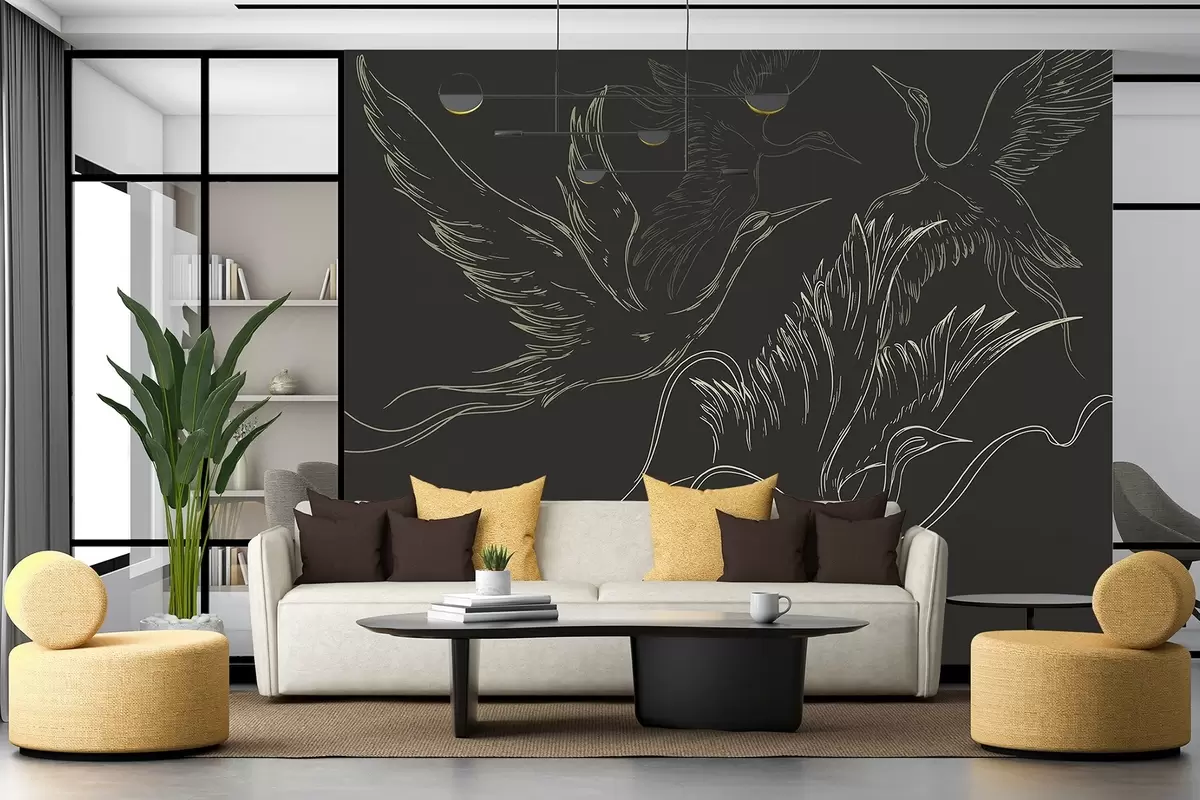 Fototapeten Vögel fliegen, Minimalismus, Linienkunst, Natur, dunkler Hintergrund N° w02061v3