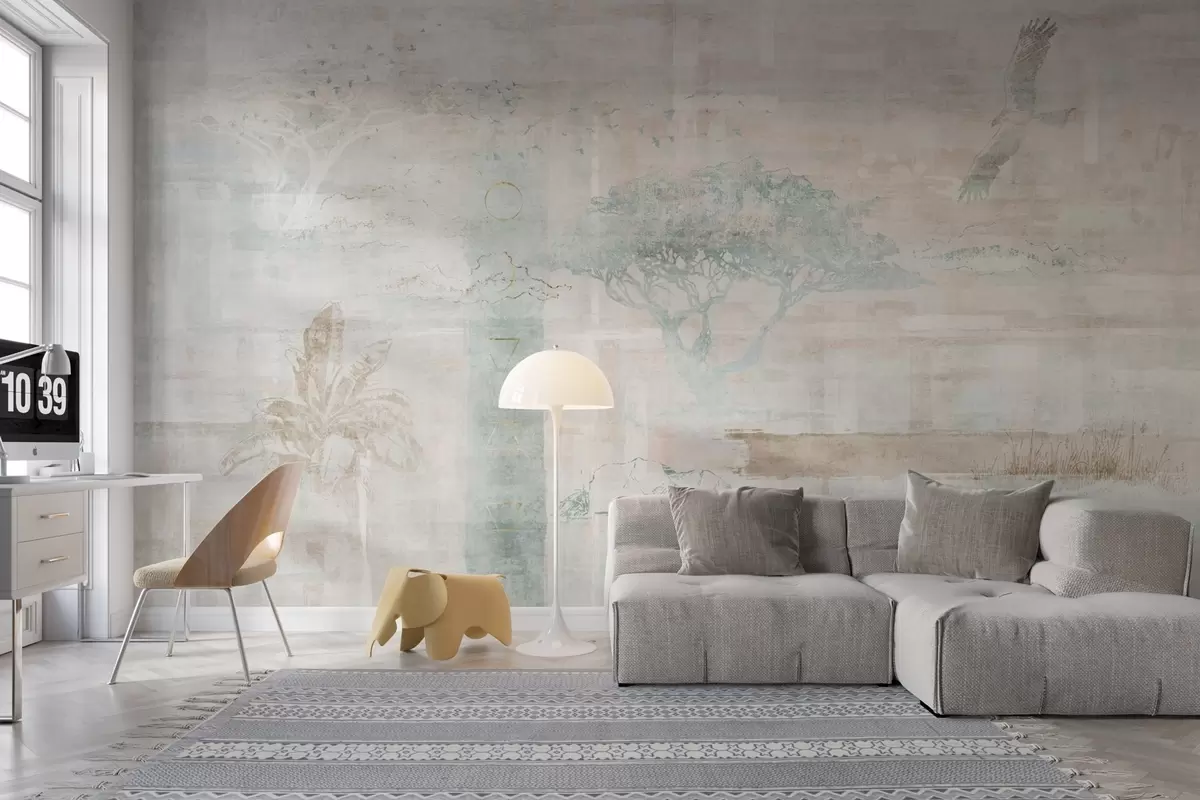 Sie können die Tapete sehr vorsichtig mit einem leicht feuchten Schwamm reinigen. Wir raten jedoch davon ab, die Tapete zu schrubben oder Reinigungsmittel zu verwenden, da dies die Oberfläche und die Farben der Tapete beschädigen kann.