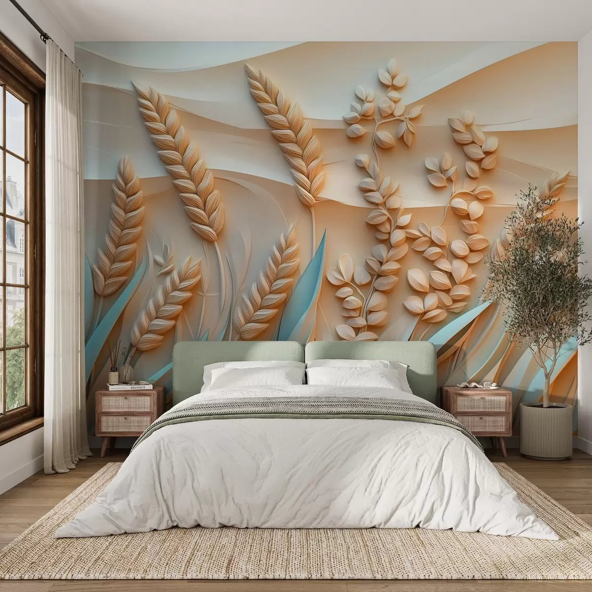 Fototapeten Weizenwuchs in einem geprägten Stil in zarten Farben N° w02147