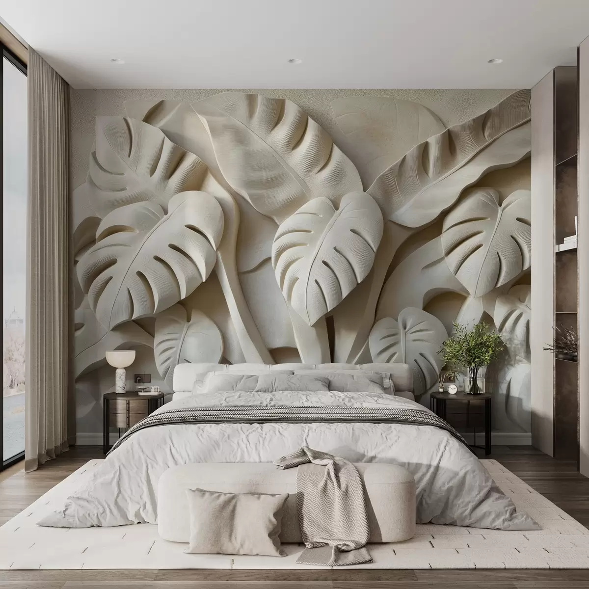 Fototapeten Flachrelief von großen Monstera-Blättern N° w02312