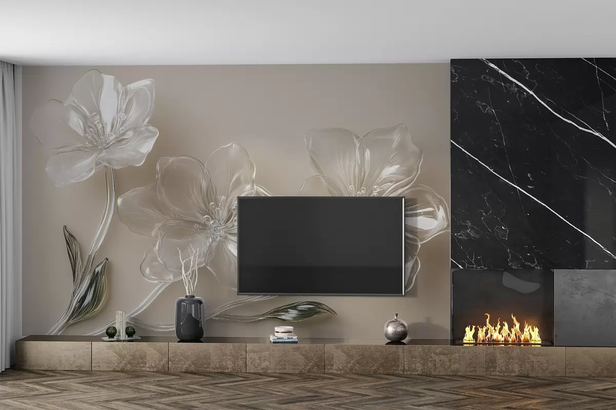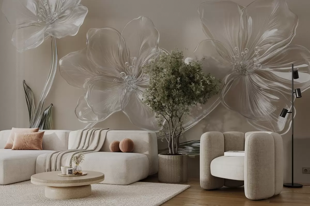 Fototapeten große Blumen aus Glasimitat auf beigem Hintergrund N° w02518