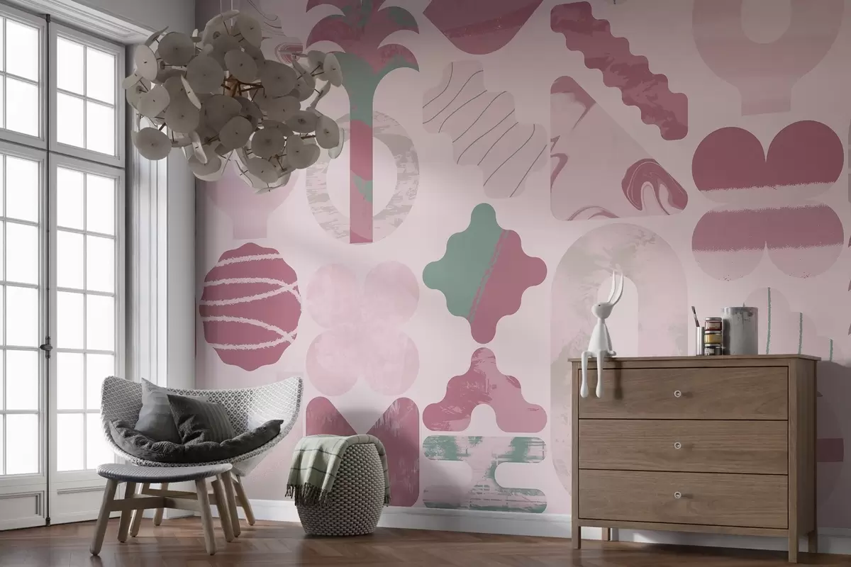 Fototapeten verschiedene interessante Formen, moderne Geometrie in rosa Farben N° w02550
