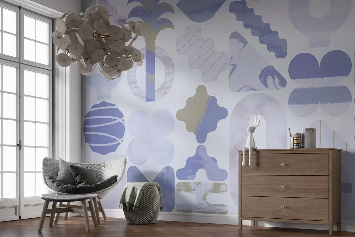 Fototapeten verschiedene interessante Formen, moderne Geometrie in Blautönen N° w02550v1