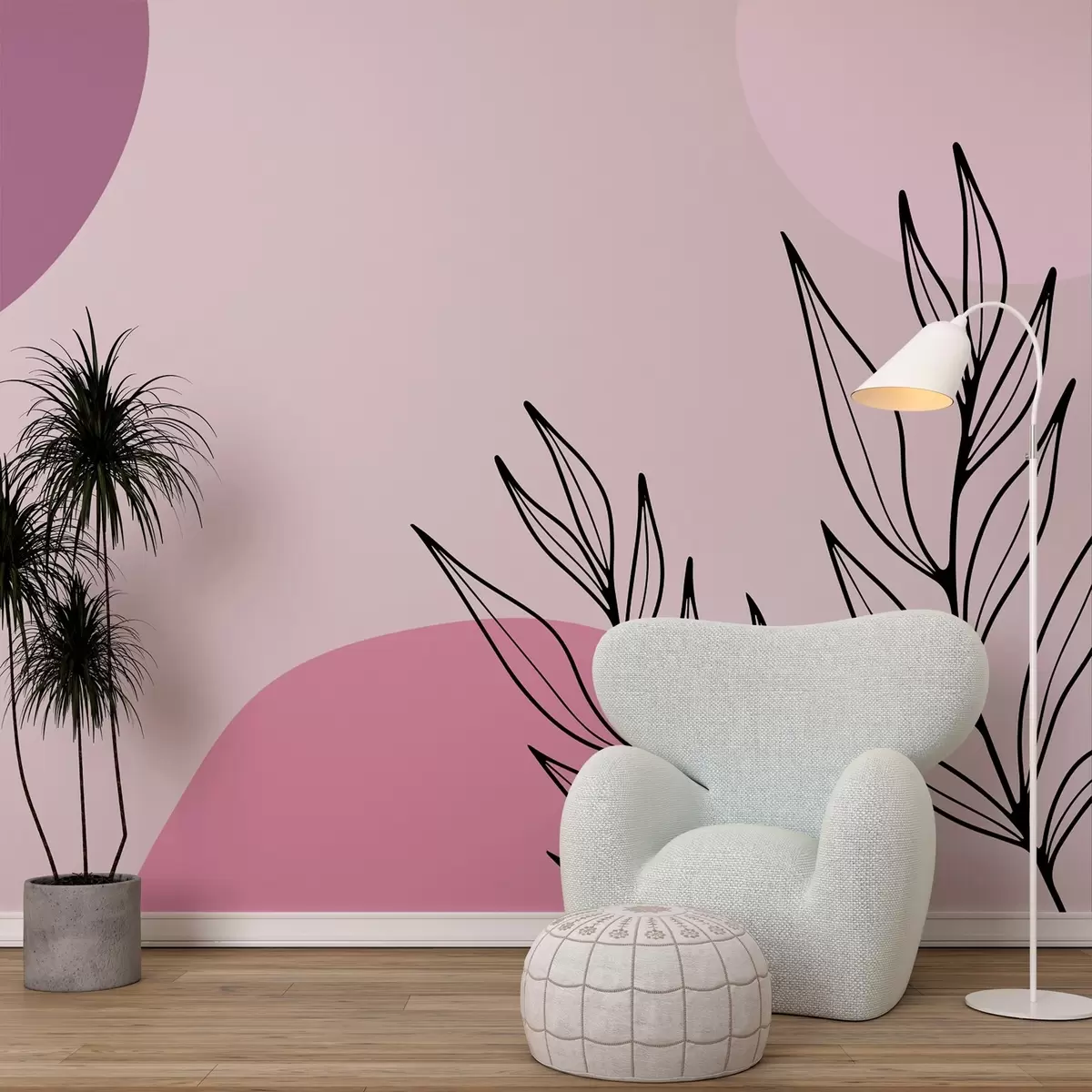 Fototapeten rosa Abstraktion mit Blättern N° w02666
