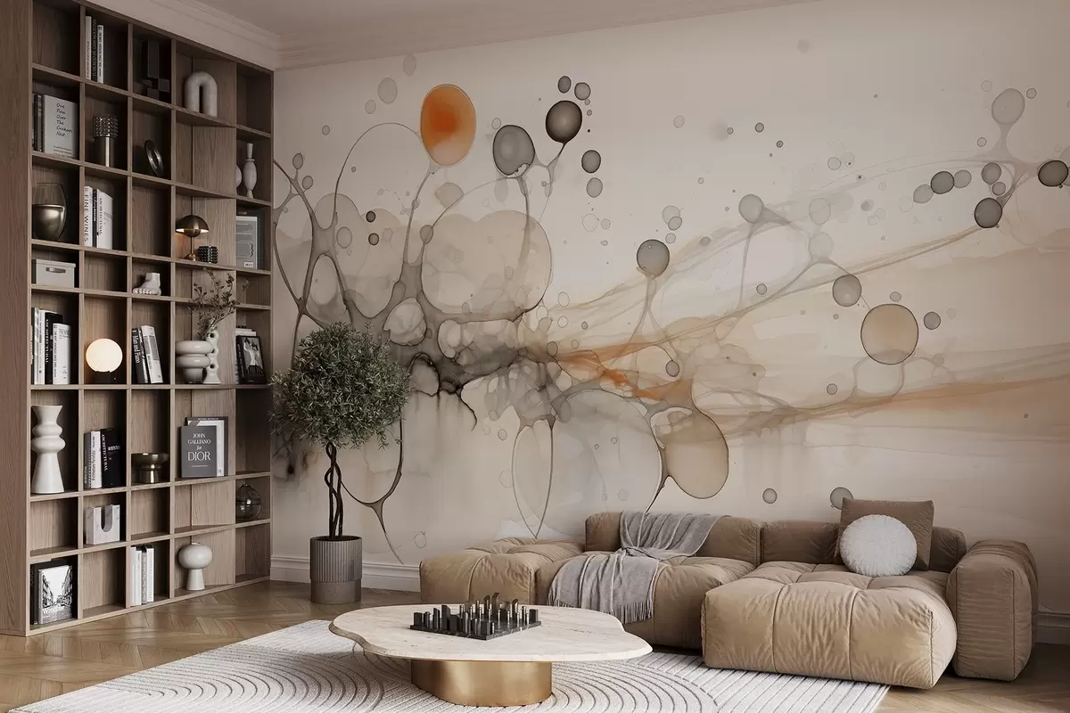 Fototapeten Abstraktion, Minimalismus, Tuschezeichnungen, flüssige, beige und graue Farben N° w02750