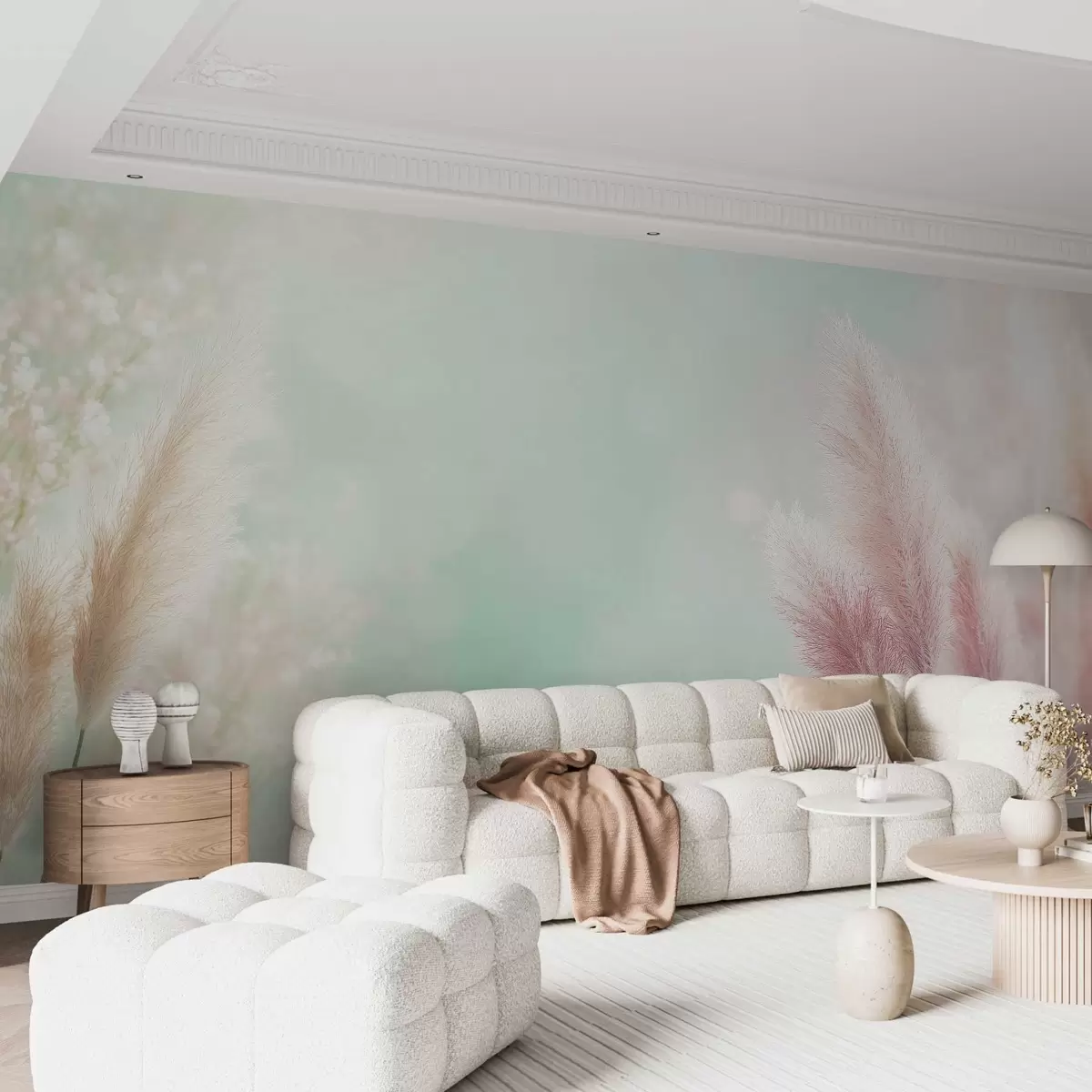 Fototapeten pampasgras auf zarttürkisem Hintergrund N° w02766