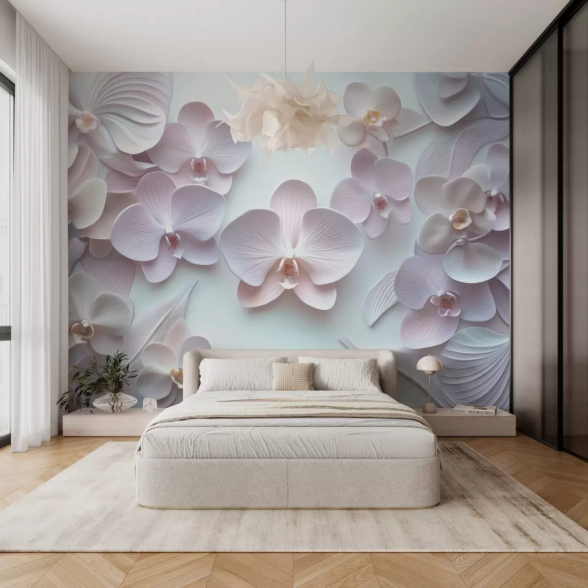 Fototapeten Zarte Archidienblüten in hellen Farben mit 3D-Imitation N° w02912